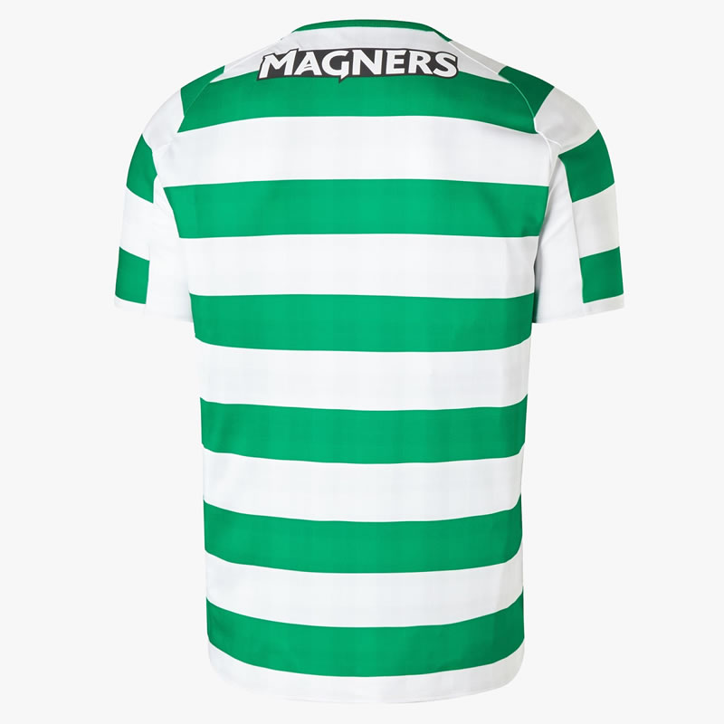 A rather classic design, the Celtic 18-19 home kit comes with the club's traditional hoops and a grown-on placket collar with a single button.
