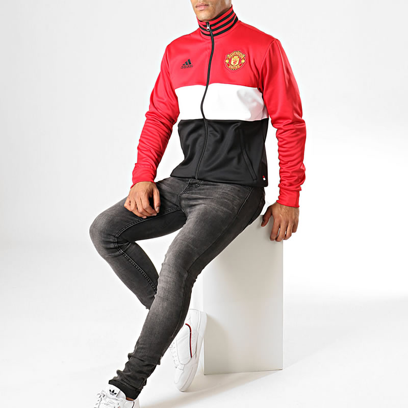 Classic adidas style, with a design that pays homage to Man Utd. This football track jacket is made from soft knit, with front zip pockets and a high stand-up collar. A club crest on the chest shows your support.