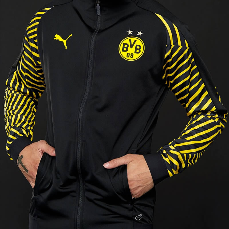 Borussia Dortmund Pre-match Jacket Made by Puma from polyester, a ribbed finish to the elasticate..